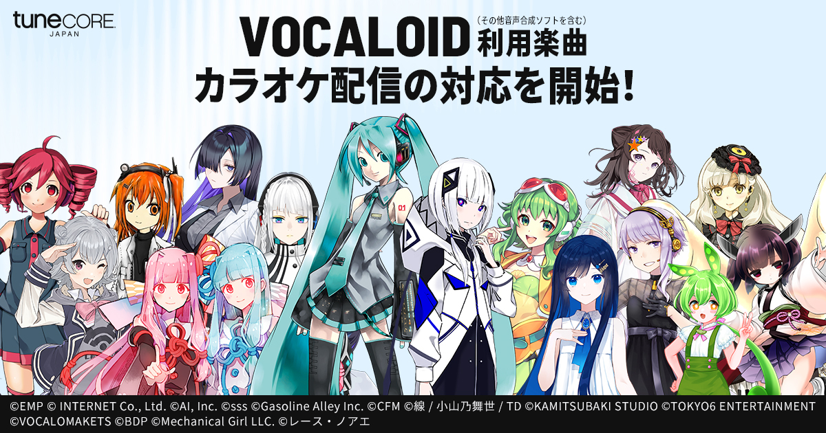 TuneCore Japanはこの度、VOCALOID(その他音声合成ソフトを含む) を使用した楽曲の『Video Kicksビデオ配信サービス カラオケ配信』の対応を開始いたしました。