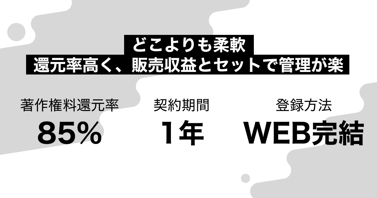 第一に、著作権管理サービスを利用するメリットとして、毎月100%還元しているストリーミングやダウンロードの販売収益とは別に、著作権利用による収益(著作権収益)を受け取ることができます。