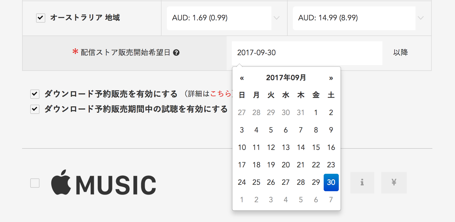 *「iTunes Store」側の審査状況により10日間(営業日)程時間を要する場合がございますので、設定した販売開始日が短いと予約販売が実行されないケースもございますのでご注意ください。