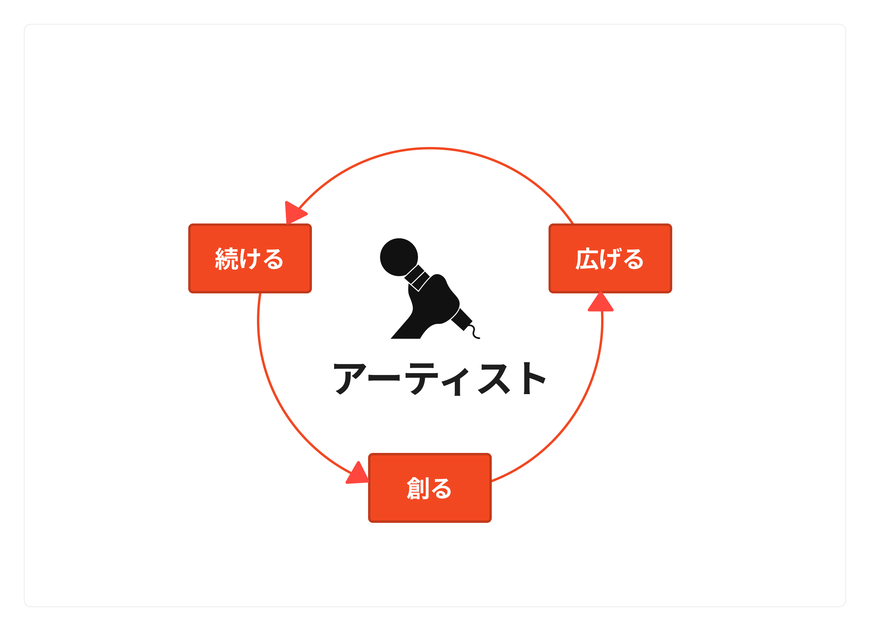 アーティスト活動の「創る」→「広げる」→「続ける」という循環のなかで、「広げる」にフォーカスしていきます。