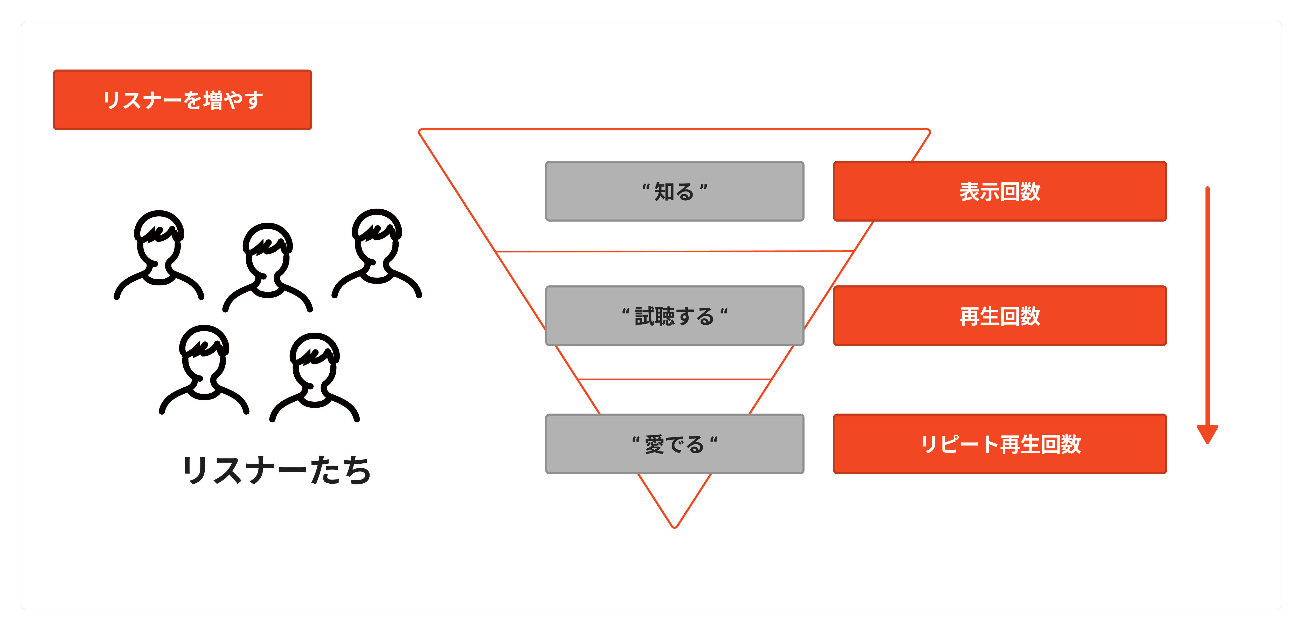 音楽を発信する立場から、「リスナーを増やす」うえで大切なことは、この3ステップに対してアクションを起こすことです。