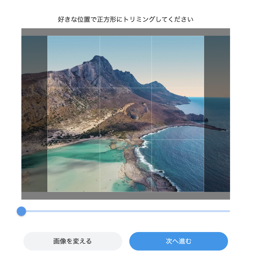 正方形ではない画像も、アップロード時に切り取る(クロップする)ことができます。