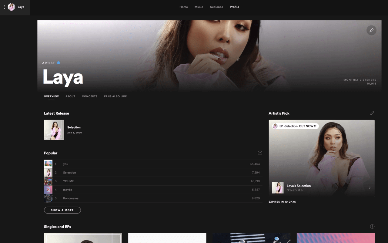 - Spotify for Artistsより、「アーティストピックアップ」を更新し、最新リリースを掲載する。