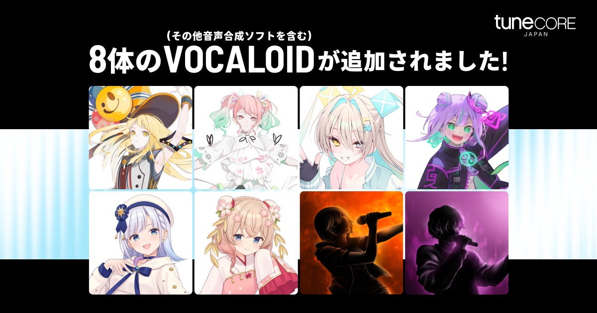 いつも TuneCore Japan をご利用いただきありがとうございます。 このたび新たに、以下8体のVOCALOID(その他音声合成ソフトを含む)の利用が可能になっています。 夢ノ結唱 HALO(株式会社ブシロー…