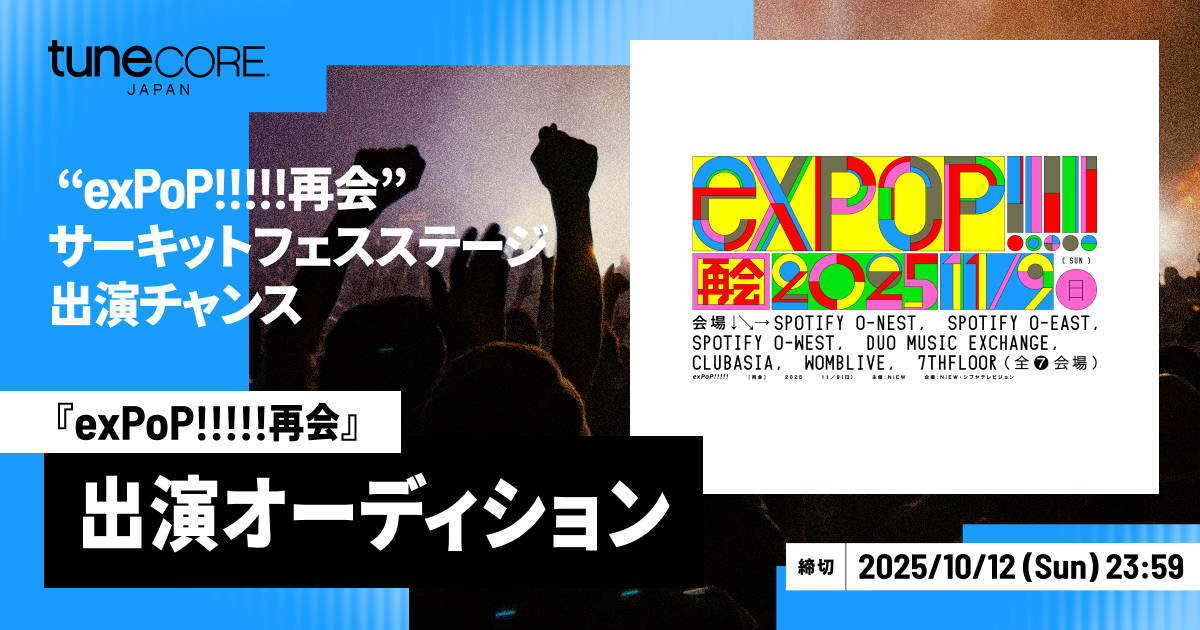 この度、2025年11月9日(日)に東京・渋谷にて行われるサーキット型音楽フェスティバル「exPoP!!!!!再会」のステージ出演オーディションを開催いたします。 『exPoP!!!!!』とはNiEW株式会社が毎月開催している、新しい才能…