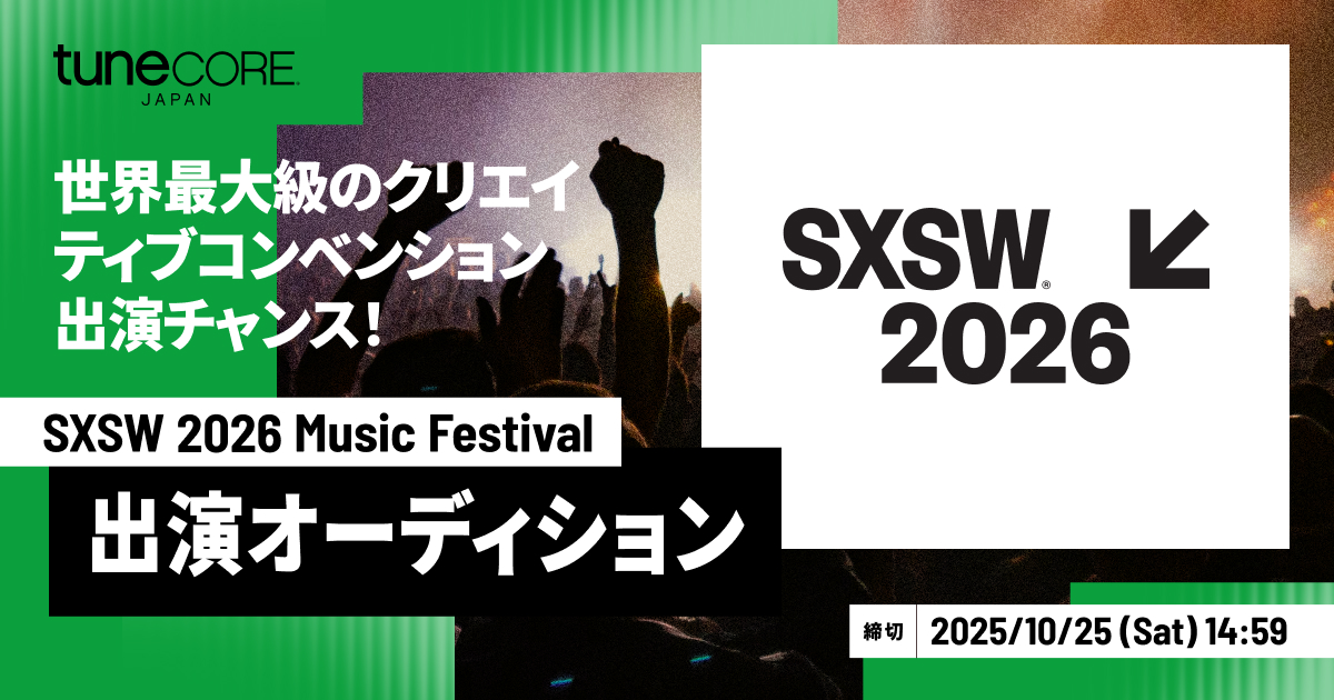 TuneCore Japanは、サウス・バイ・サウスウェスト(以下SXSW)と連携し、世界に向けて活動をスケールさせたいアーティストにとって絶好の機会であるステージ「SXSW 2026 Music Festival」への出演オーディションを今年も実施します。 …