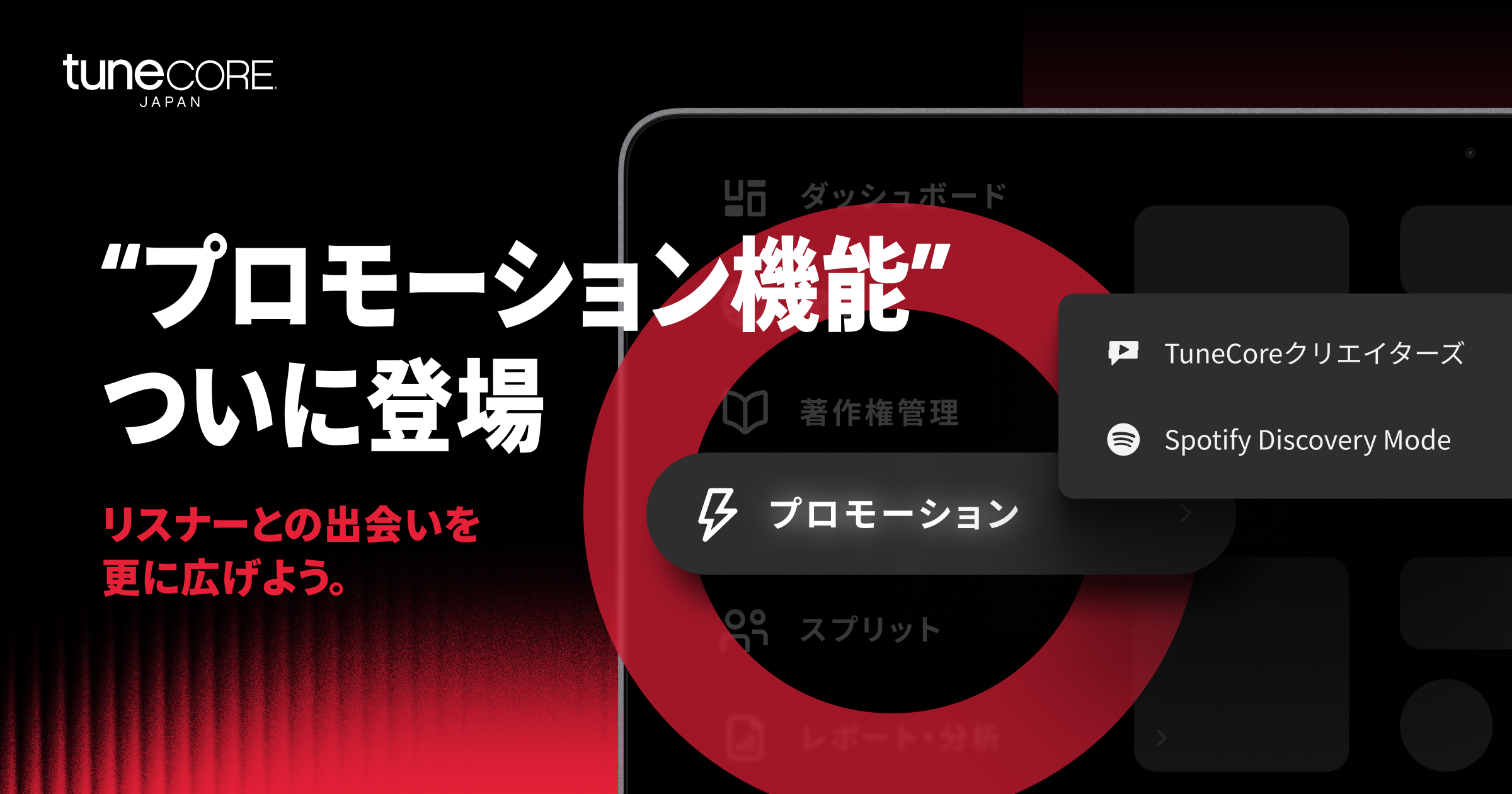 いつも TuneCore Japan をご利用いただきありがとうございます。 このたび、TuneCore Japanでは新たに「プロモーション機能」の提供を開始しました! ログイン後のダッシュボードには「プロモーション」のタブが新設されます。 &nb…
