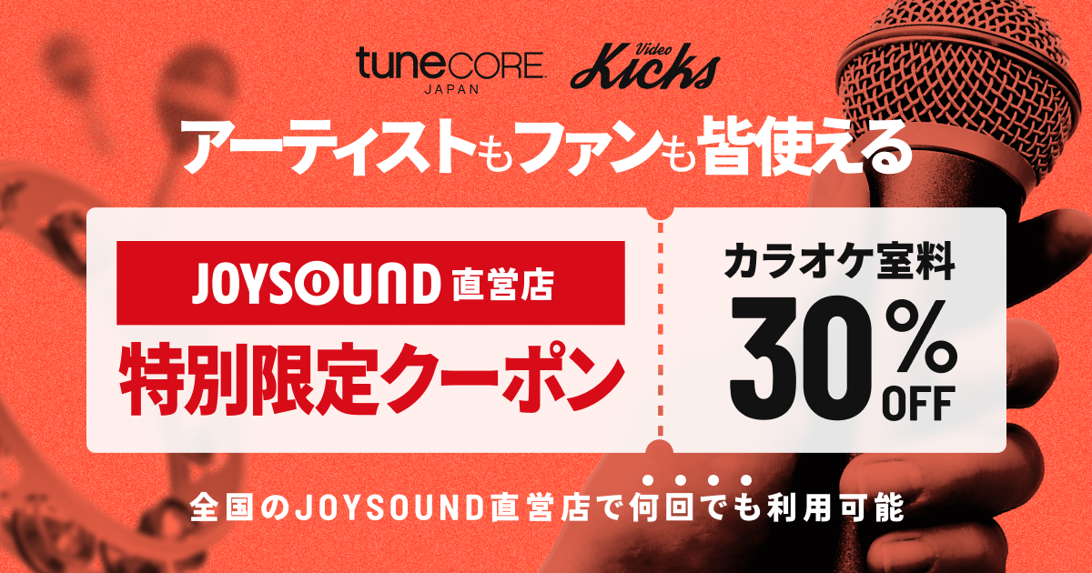いつもTuneCore Japanをご利用いただきありがとうございます。 カラオケ配信をしているアーティストの皆さんに朗報です。JOYSOUND直営店で使える「カラオケ室料30%OFFクーポン」を、ファンに配布できるようになりました! もちろん、…