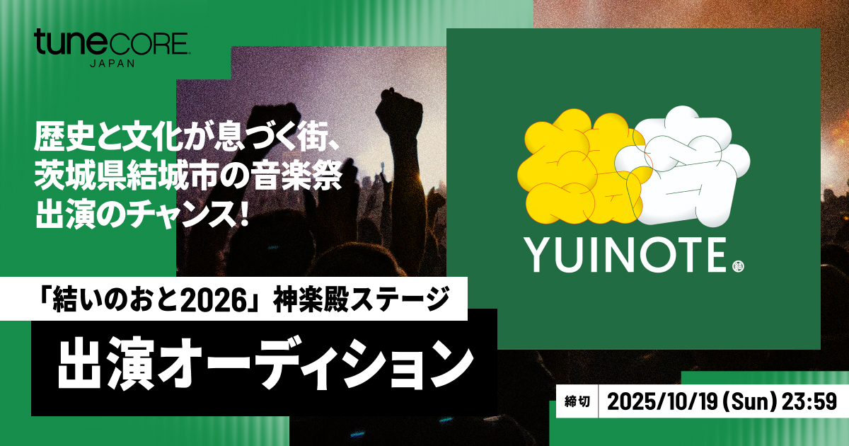 「結いのおと」とTuneCore Japanによるステージ出演オーディションがスタート! 茨城県結城市の街なかを舞台に毎年4月に開催している街なか音楽祭、『結いのおと』。2026年4月に開催される「結いのおと2026」内のステージ出…