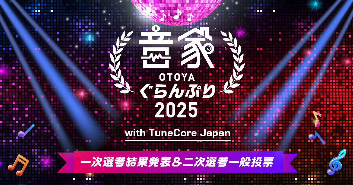 『音家ぐらんぷり2025 with TuneCore Japan』の一次選考の結果発表と、二次選考となる一般投票特設ページがオープンしました! 応募総数は1,947作品。たくさんのご応募ありがとうございました。 その中から見事一次選考を通過した1…