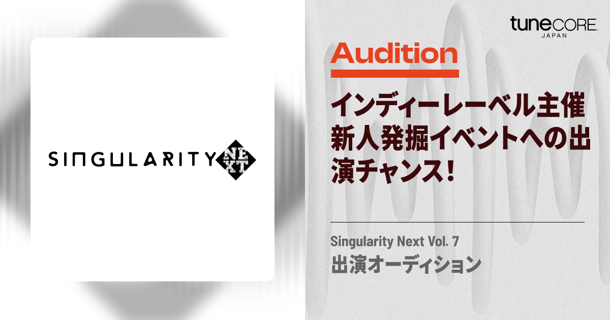 今回TuneCore Japanは、インディーズレーベルTrigger Recordsと連携し、 新しい才能と出会うべく出演者募集型の無料ライブイベント「Singularity Next」の…