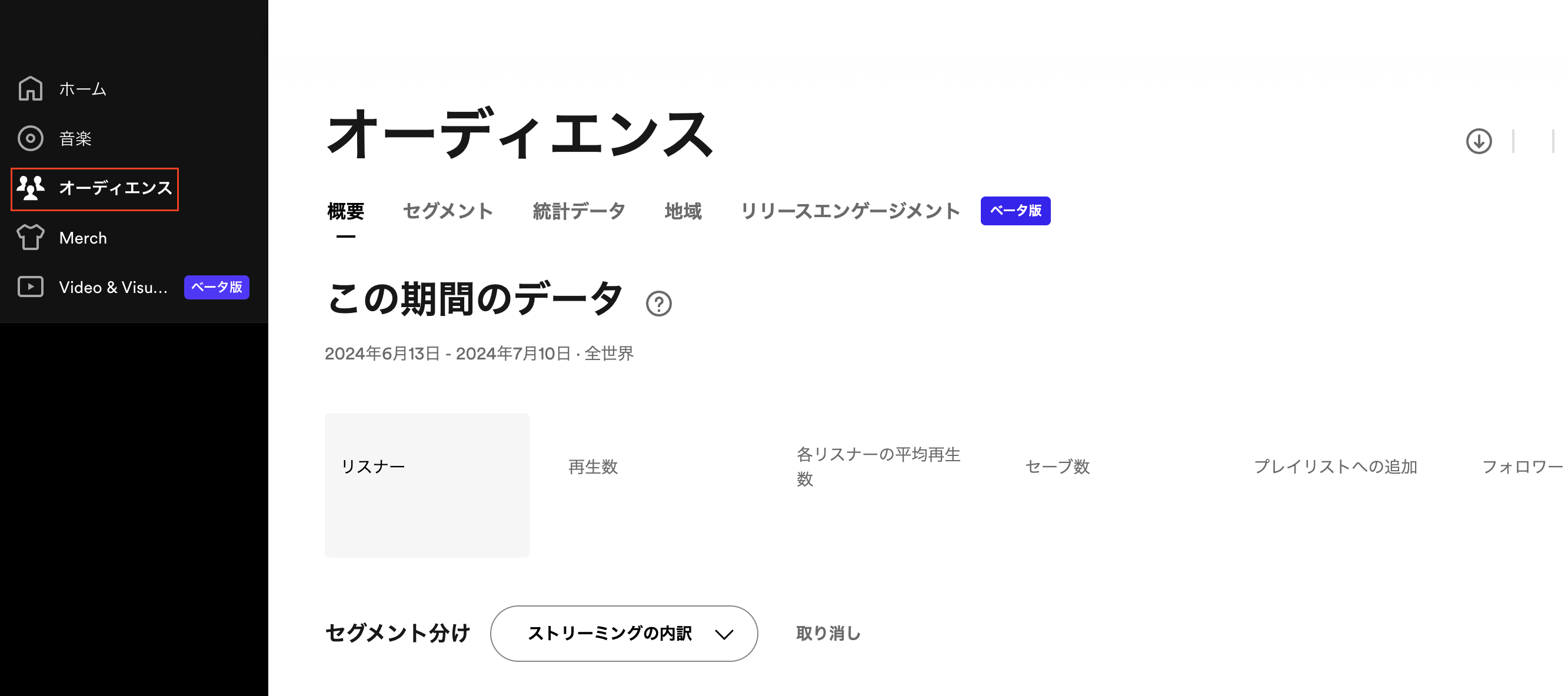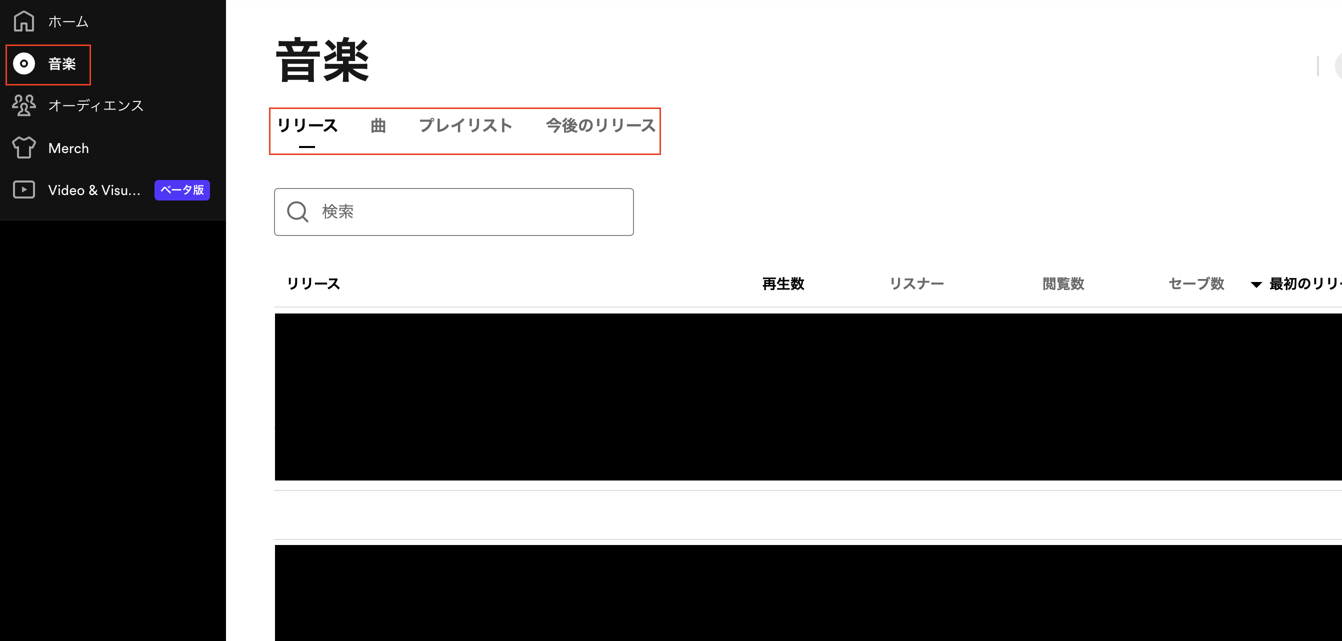「音楽」タブでは基本的に、リリースの再生数や保存数・リストインしたプレイリスト等の情報を確認することができますが、使わなければ勿体無い機能が一つあります…