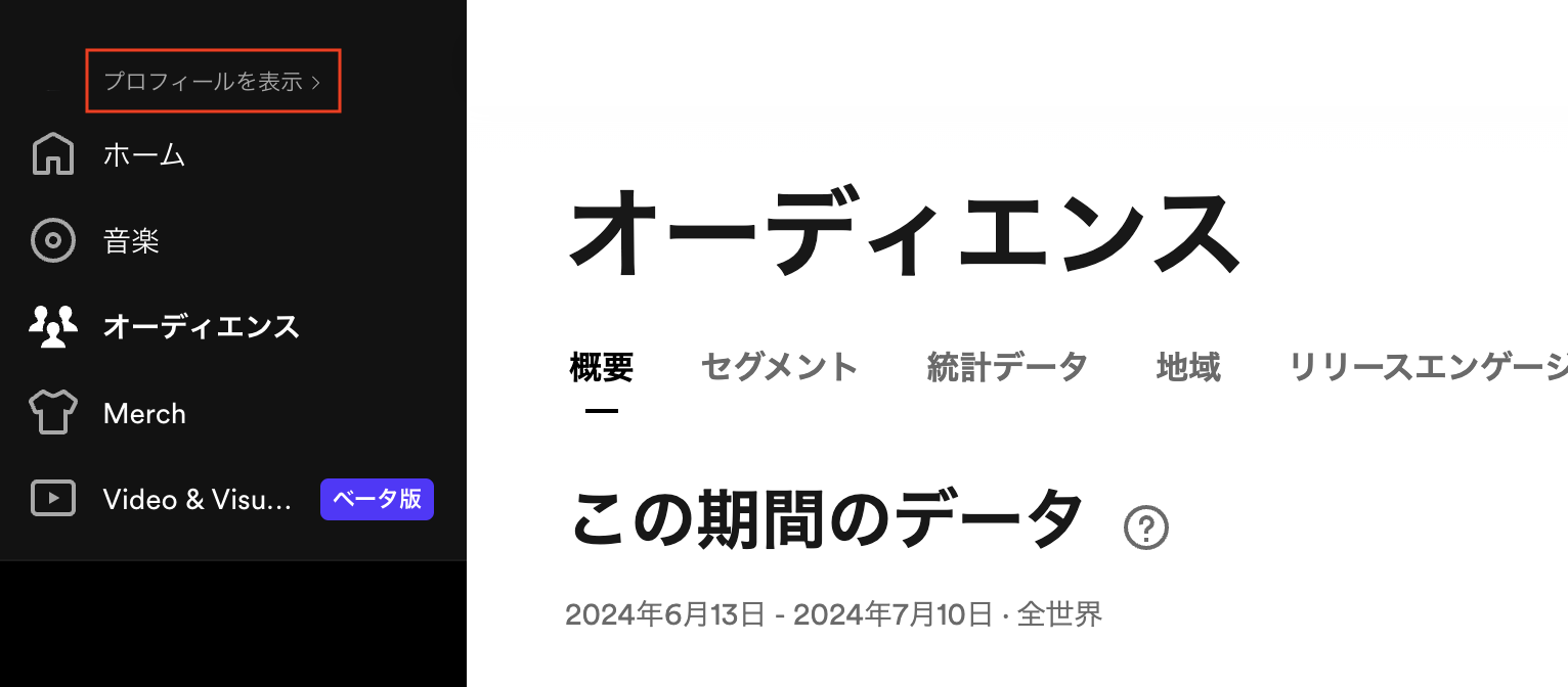 Spotifyにはアーティスト画像だけでなくヘッダー画像がありますが、それらは画面左上「プロフィールを表示」より変更することが可能です。