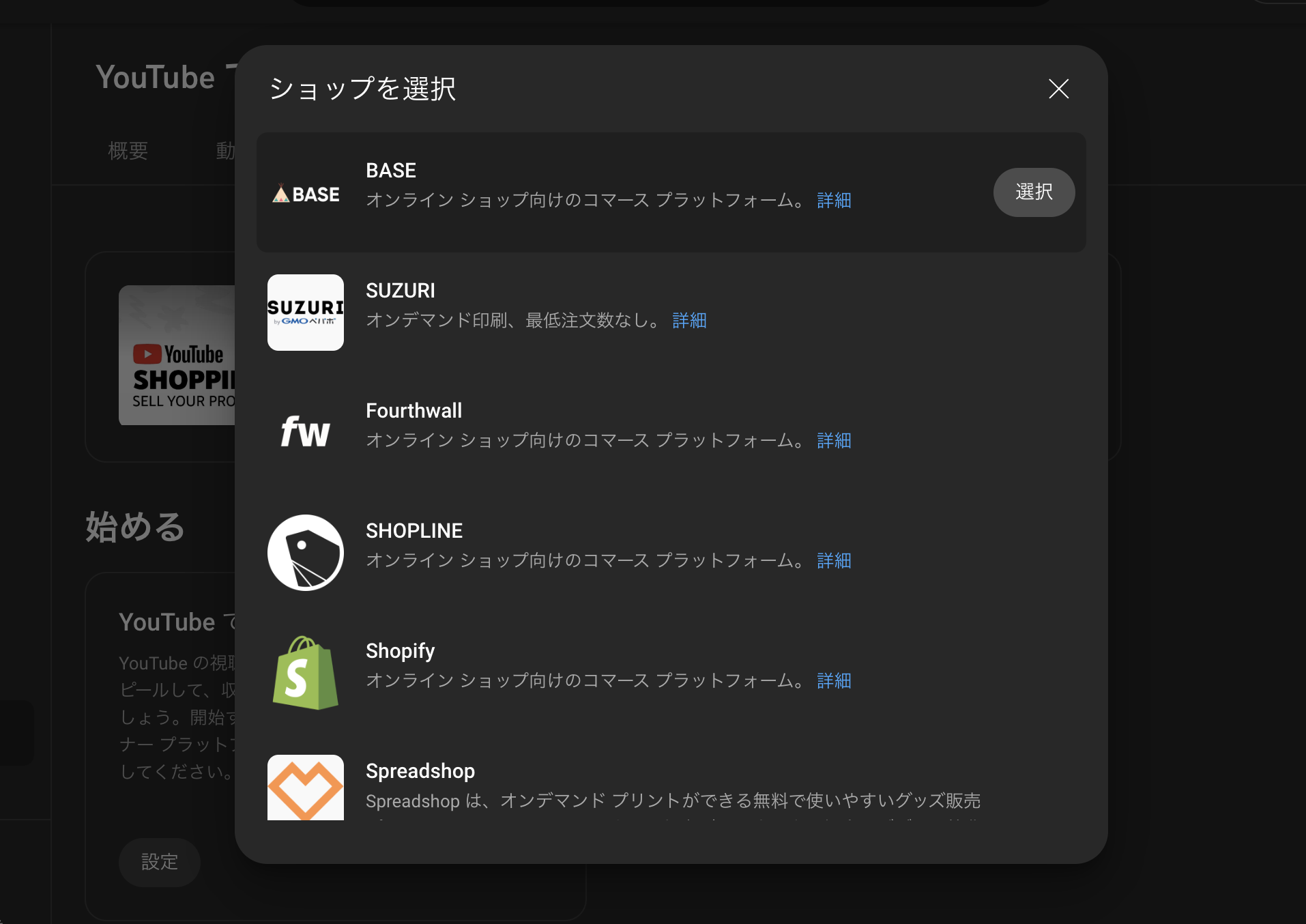 YouTubeショッピングの連携に対応しているストア
